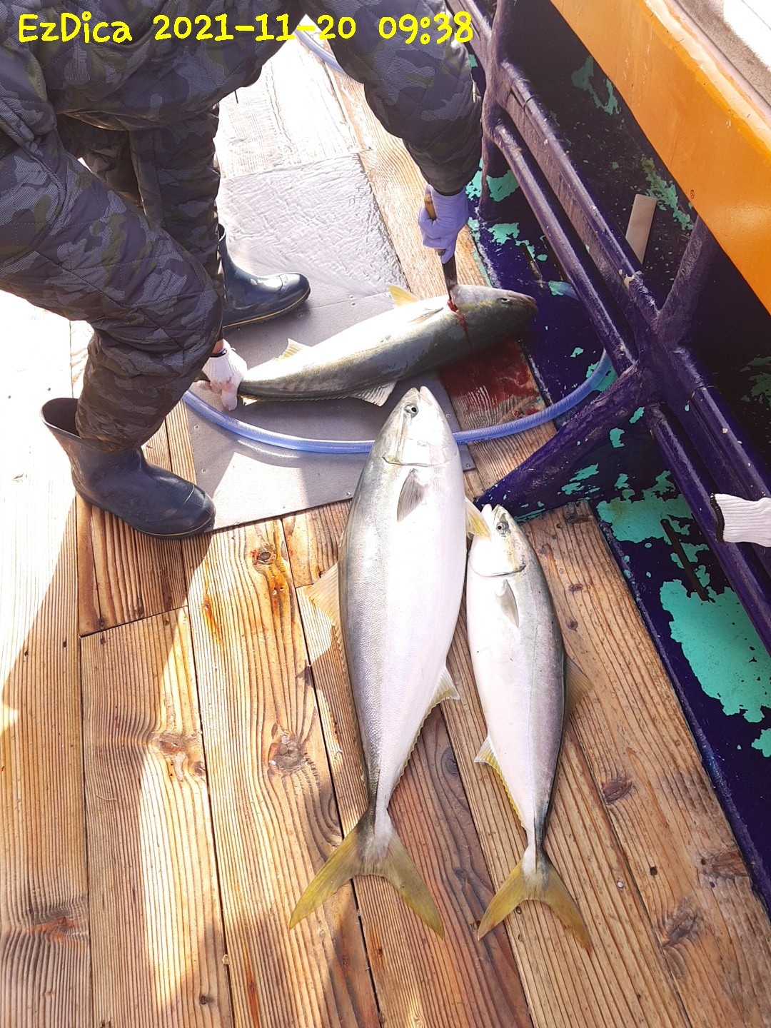기대가 많았던 오후 날물 에는의외로작은 사이즈에 알방어와 뜨문뚜문 중,대방어가 한미리씩 나와 주었습니다
